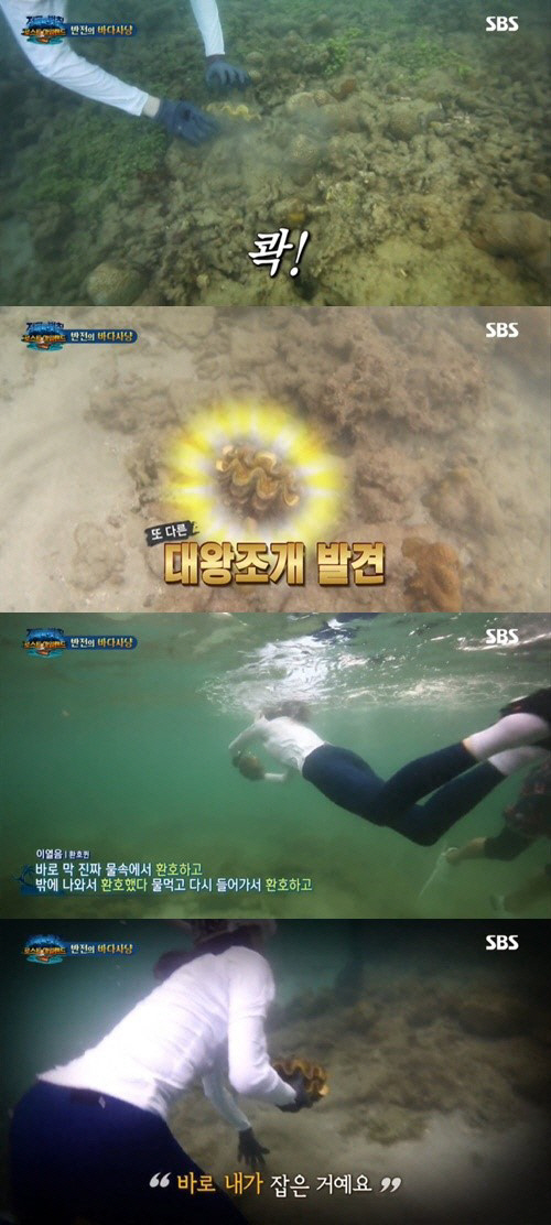 지난달 29일 방송된 SBS 예능프로그램 '정글의 법칙 in 로스트 아일랜드'(이하 '정글의 법칙')에서는 배우 이열음이 대왕조개 3마리를 잡는 모습이 담겼다. 방송 말미 예고편에는 이열음을 포함한 병만족은 이열음이 캔 대왕조개를 함께 먹는 모습도 담겼다.