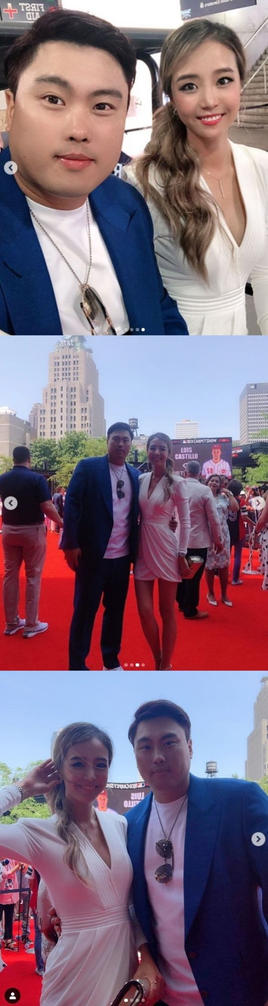 [스포츠조선닷컴 이지현 기자] 방송인 배지현이 남편인 LA다저스 투수 류현진과 메이저리그 올스타전에서 달달한 케미를 뽐냈다.