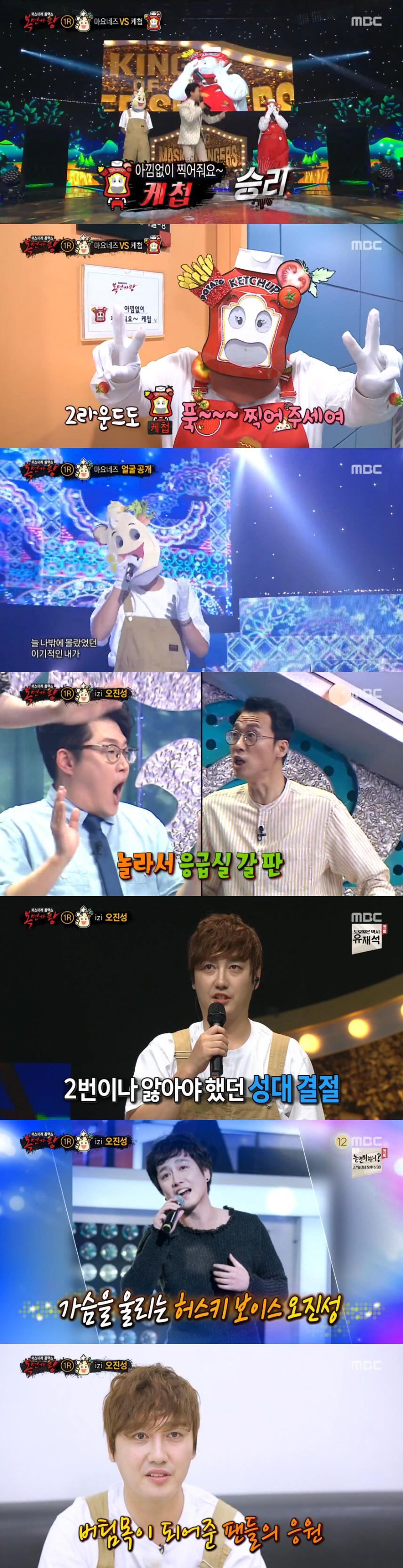 마요네즈는 EXO의 '12월의 기적'을 부르며 정체를 공개했다. 판정단들은 그의 범상치 않은 가창력을 보고 "가수네"라고 추리했다. 그는 '응급실'로 유명한 izi의 오진성이었다.