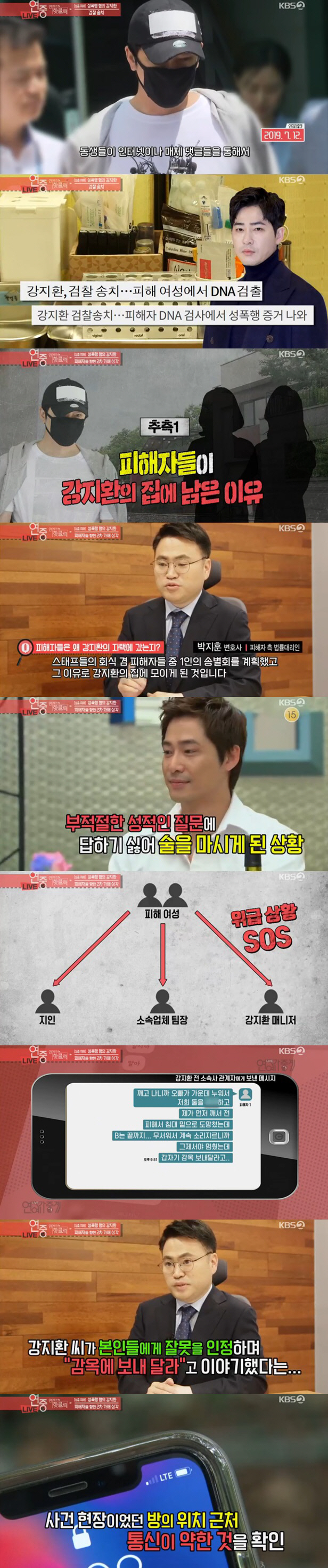 19일 방송된 KBS2 생방송 '연예가중계'에서는 '성폭행 혐의' 강지환 사건의 전말과 피해자들이 받고 있는 2차 피해에 대해 취재했다.