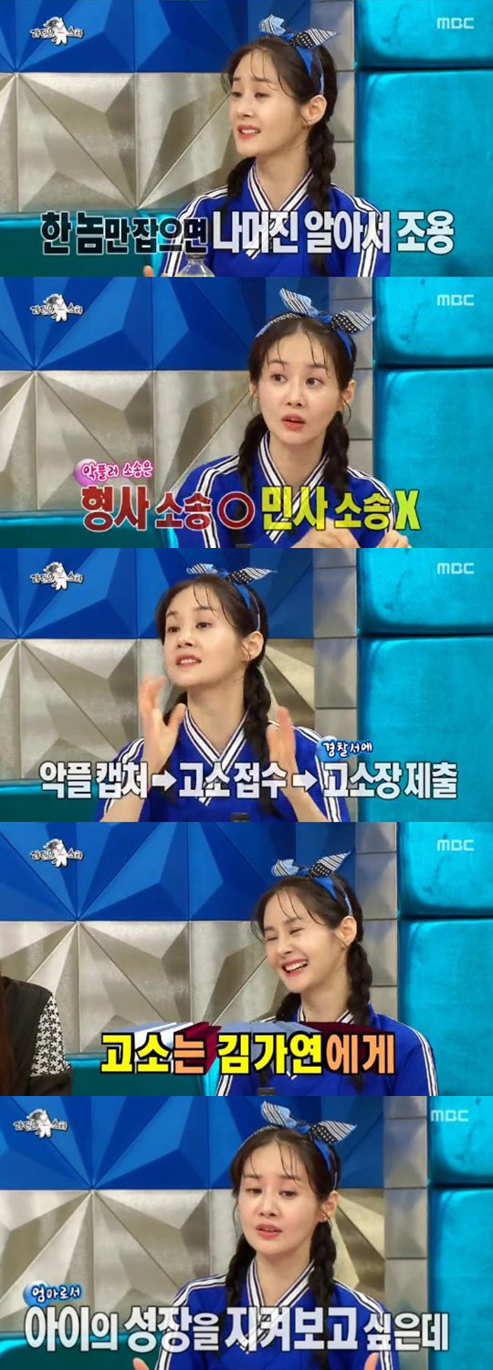 [스포츠조선 김영록 기자]'라디오스타' 김가연이 악성 댓글 잡는 '고소의 여왕'을 자칭했다.