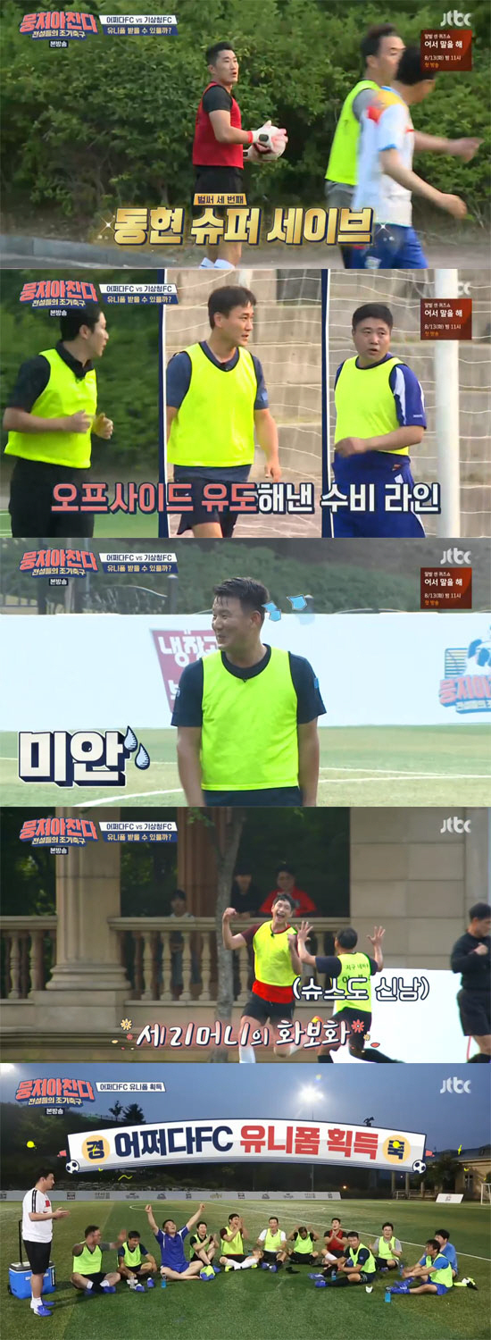 후반전에는 허재가 투입됐다. 그러나 시작 12초 만에 골을 먹은데 이어 연이은 실점으로 아쉬움을 안겼다. 특히 기상청FC 에이스의 극강 활약은 대단했다. 유니폼까지 한 골의 여유가 있는 상황에 허재와 정형돈이 교체투입됐다. 몇번의 찬스를 놓친 가운데, 종료 1분 전 또 한번의 코너킥 기회를 얻었다. 하지만 이마저 실패했고 최종 1:8로 경기를 마무리했다. 이에 드디어 어쩌다FC는 유니폼을 받게 됐다.