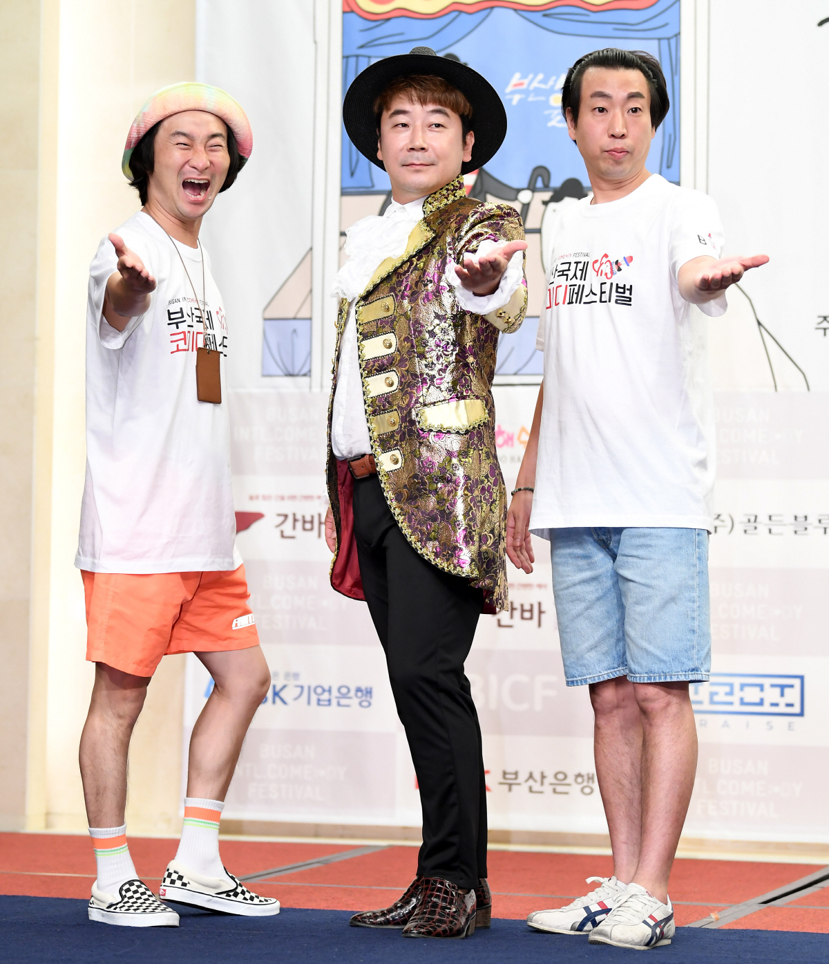 | 제7회 부산국제코미디페스티벌 기자회견이 8일 오전 서울 마포구 상암동 스탠포드호텔에서 열렸다. 개그맨 한현민, 이재형, 정진욱이 포토타임을 갖고 있다. 상암동=박재만 기자 pjm@sportschosun.com/2019.08.08/ |