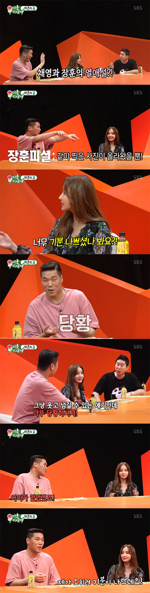 한채영은 또 "그냥 웃고 넘길 수 있는 얘긴데 너무 당황하셔서 내가 기분이 나빠지려고 한다"라고 서장훈을 놀려 웃음을 자아냈다.