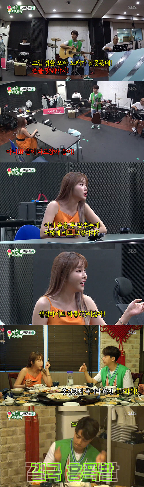 허경환은 홍진영의 지적에 "이러다 멤버도 바꾸겠다"라고 말해 웃음을 자아냈다.