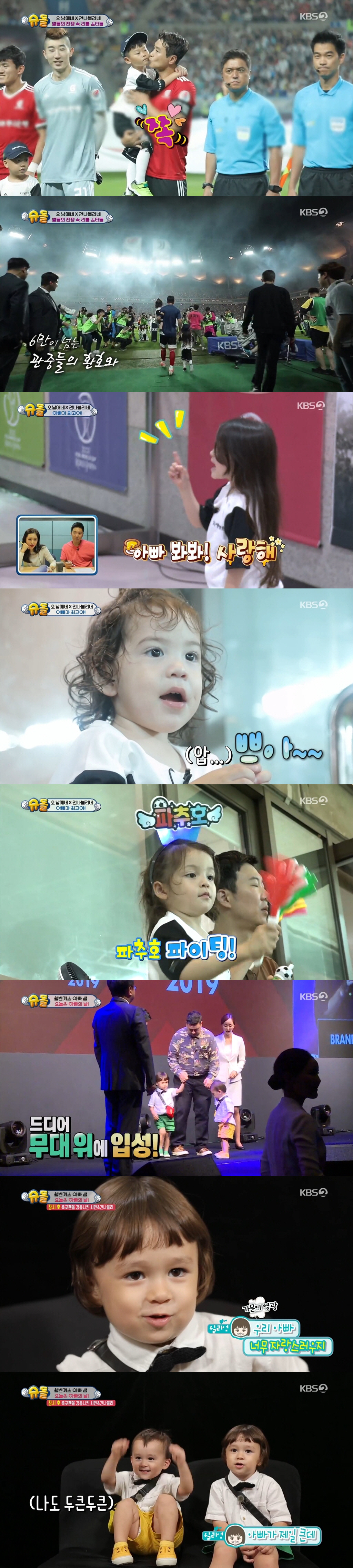 18일 방송된 KBS 2TV '슈퍼맨이 돌아왔다'(이하 '슈돌') 291회는 '내 인생 가장 뜨거운 날'이라는 부제처럼 아빠와 함께 뜨거운 하루를 보낸 아이들의 모습이 그려졌다. 시상식에 간 샘 아빠와 K리그 올스타의 친선경기에 참여한 동국 아빠와 주호 아빠를 응원하는 아이들의 모습이 TV 앞 시청자들에게도 큰 힘을 전달했다.