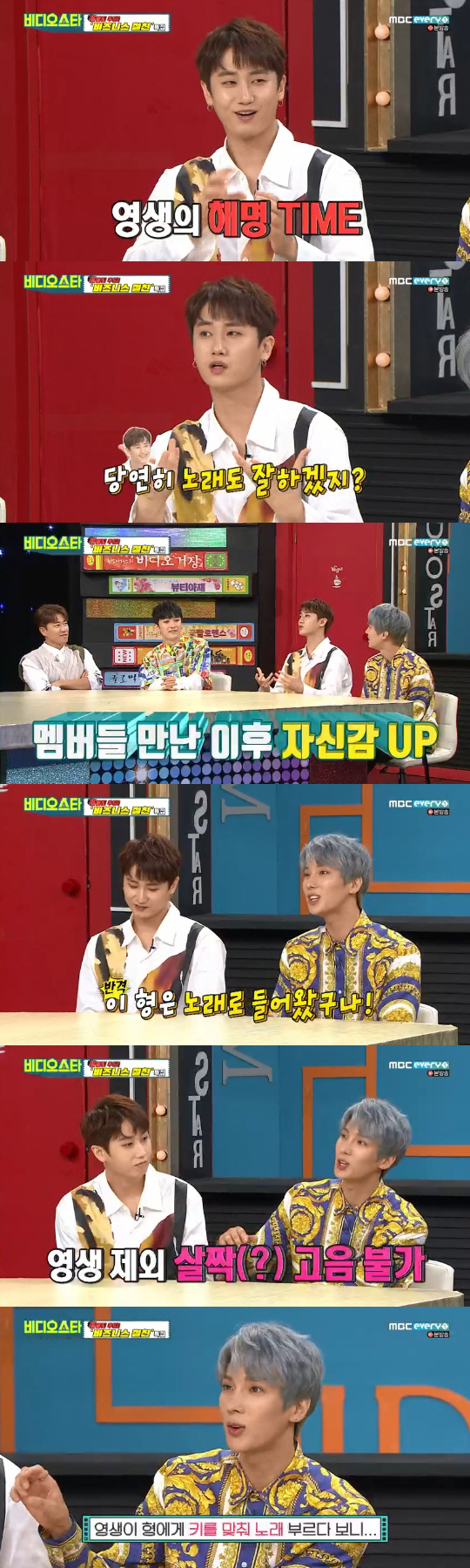 이에 허영생은 "그룹이 결성되어 있었던 거니까 당연히 노래도 잘할 거라고 생각했다"며 "나도 노래 잘한다는 생각을 한 적이 없었는데 진짜 자신감이 붙고 노래 연습을 열심히 했다"고 밝혀 웃음을 자아냈다.