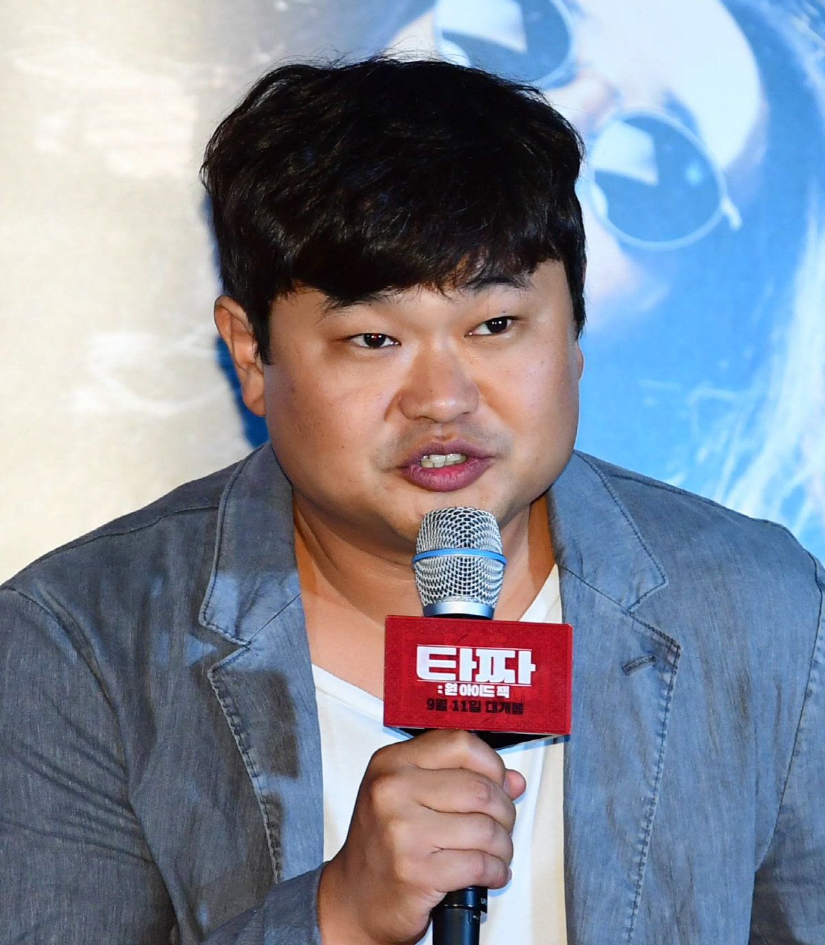 권오광 감독이 8일 건대 롯데시네마에서 열린 영화 '타짜: 원 아이드 잭'의 언론시사회에서 인사말을 하고있다.