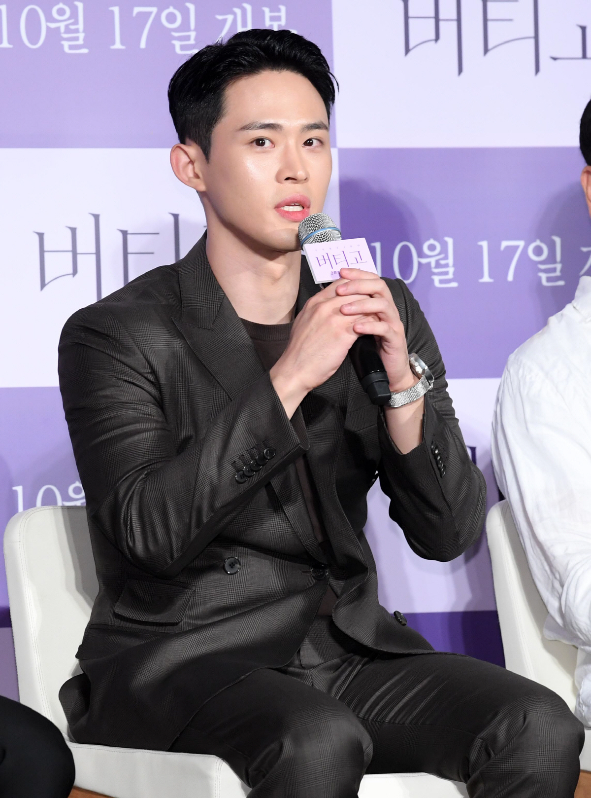 영화 '버티고'의 제작보고회가 18일 롯데시네마 건대입구에서 열렸다. '버티고'는 현기증 나는 일상, 고층빌딩 사무실에서 위태롭게 버티던 서영(천우희)이 창 밖의 로프공과 마주하게 되는 아찔한 고공 감성 무비다. 인사말을 하는 정재광의 모습. 허상욱 기자 wook@sportschosun.com
