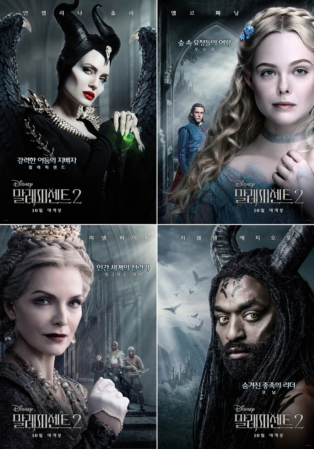 [스포츠조선 조지영 기자] 디즈니 최초의 마녀 캐릭터를 다룬 판타지 모험 영화 '말레피센트2'(요아킴 뢰닝 감독)가 10월 17일 개봉을 확정, 역대급 배우들의 놀라운 싱크로율을 자랑하는 4종 캐릭터 포스터를 공개했다.