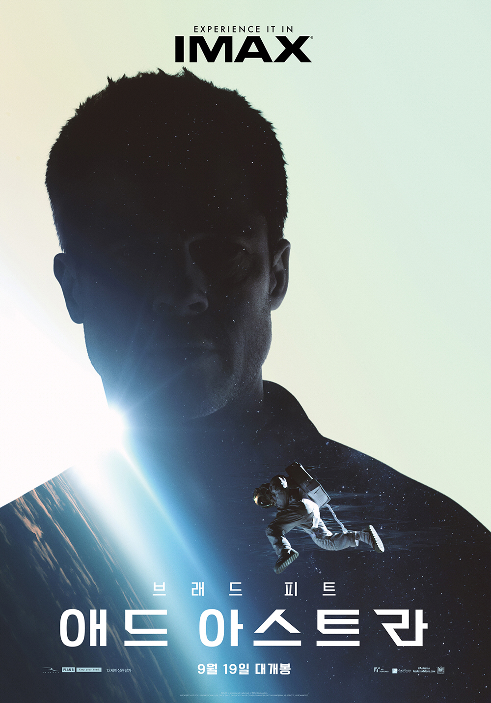 오는 19일 개봉을 앞둔 '애드 아스트라'가 동시기 개봉작 및 외화 전체 예매율 1위를 기록하며 예비 관객들의 기대감을 집중시키고 있는 가운데, IMAX 개봉을 확정해 화제를 모았다. CGV 왕십리, 의정부, 일산, 인천, 서면, 울산삼산, 대전, 대구, 광주터미널 등 전국 CGV 9개 IMAX관에서 만나 볼 수 있는 이번 '애드 아스트라'의 IMAX 상영은 영화 속 경이로운 비주얼의 광활한 우주를 더욱 큰 스크린에서 만나보고 싶어하는 예비 관객들의 관람 욕구를 완벽하게 자극시킨다. IMAX 개봉 확정 소식과 함께 공개된 IMAX 포스터는 우주 탐사 임무를 떠나는 우주비행사 로이 맥브라이드로 완벽 변신한 브래드 피트의 실루엣 안으로 아득하고 광활한 우주와 푸른 빛의 지구, 그리고 우주복을 갖춘 우주비행사의 모습을 담아내 감각적인 비주얼로 시선을 압도한다. 이에 이제껏 본 적 없는 가장 현실적인 우주를 압도적인 스케일의 스크린에서 만나볼 수 있는 '애드 아스트라'의 IMAX 개봉을 향한 예비 관객들의 기대감이 더욱 증폭되고 있다.
