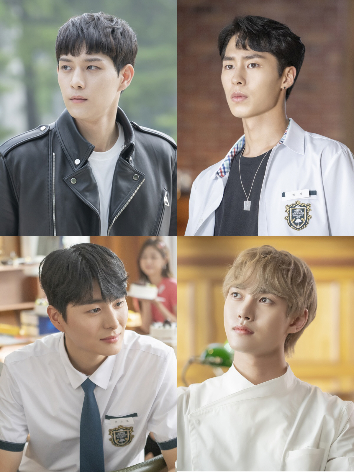 공개된 사진 속에는 서로 다른 분위기와 비주얼로 카리스마를 뿜고 있는 'A4' 4인방의 모습이 담겼다. 은단오의 약혼자이자 무심한 성격으로 나쁜 남자의 마성을 자랑하는 백경(이재욱 분), 밝고 장난스러운 겉모습 뒤에 남들이 모르는 아픔을 숨긴 이도화(정건주 분), A3의 리더이자 스리고 싸움 서열 1위, 전교 1등까지 놓치지 않는 완벽한 오남주(김영대 분)와 이름도 나이도 국적도 모든 게 다 비밀인 진미채(이태리 분)까지 4인 4색 다채로운 매력을 보여준다.
