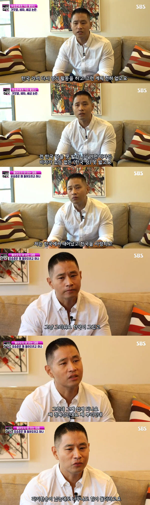 'F4비자를 고집하는 이유는 세금을 덜 내기 위해서 아닌가"라는 지문에는 "한국가서 다시 영리 활동을 할 계획이 없다. 한국 땅을 못 밟는다. 어떤 비자든 못 밟는다. 관광비자도 못 받는다. 변호사가 한국땅을 밟을 수 있는 유일한 방법으로 F4비자를 추천했다"며 "F4비자가 영리 활동을 폭 넓게 할 수 있는 지위가 부여된다. 소송을 위해서 잘잘못을 따지기 위해서는 특별법인 재외동포법에 의한 비자를 신청할 수 밖에 없었다. 재외동포법에 의한 비자에는 F4 비자가 유일했다"고 설명했다.