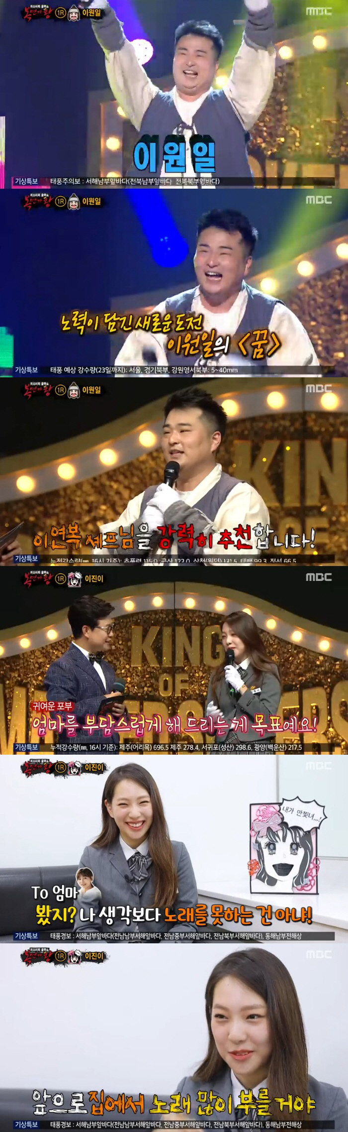 무대를 내려온 이진이는 "봤지?내가 생각보다 못하는 거 아니다. 집에서 노래 많이 부를 거다"라고 황신혜에 귀여운 영상편지를 보냈다.