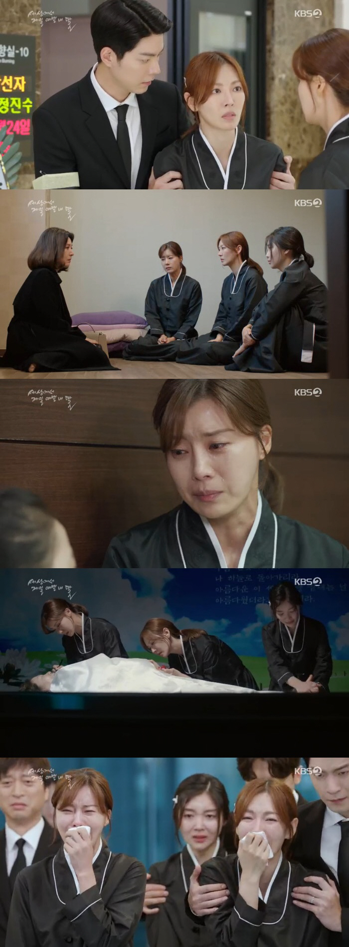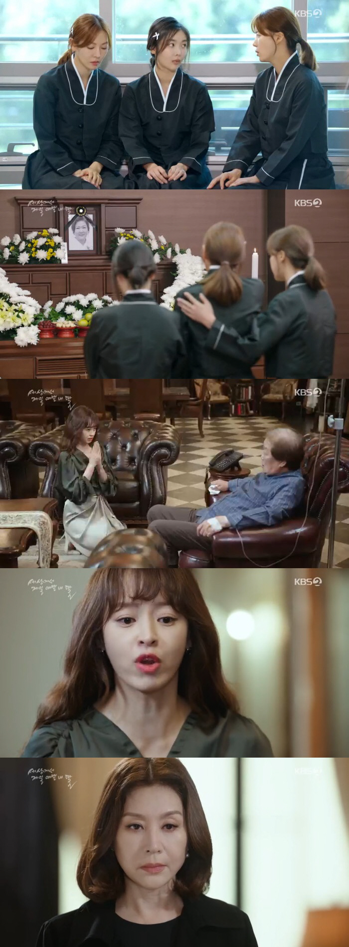 빈소를 지키던 강미리(김소연 분)는 몸에 무리가 간 듯 보였다. 한태주(홍종현 분)와 잠시 휴식을 취하러 간 강미리는 "우리 엄마 정말 돌아가신 거냐. 집에 가면 이제 엄마가 없는 거냐"며 재차 묻다 "우리 엄마 없이 내가 어떻게 사냐"며 오열했다. 빈소를 찾은 전인숙은 세 딸들에 "형님에게 부끄럽지 않게 더 행복하게 잘살자"며 "내가 너네들 도울 수 있는 일 있으면 무엇이든지 돕겠다. 형님 잘 보내드리자"고 다독였다. 입관식을 앞두고, 세 딸들은 박선자를 곱게 꾸며주며 엄마와 마지막 시간을 보냈다.