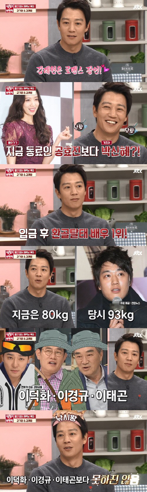 23일 방송된 JTBC 예능 프로그램 '냉장고를 부탁해'에서는 지난주에 이어서 영화 '가장 보통의 연애'의 주연 배우인 김래원과 강기영이 출연했다. 지난 주 강기영의 냉장고 공개에 이어 이번 주에는 김래원의 냉장고가 공개돼 눈길을 끌었다.
