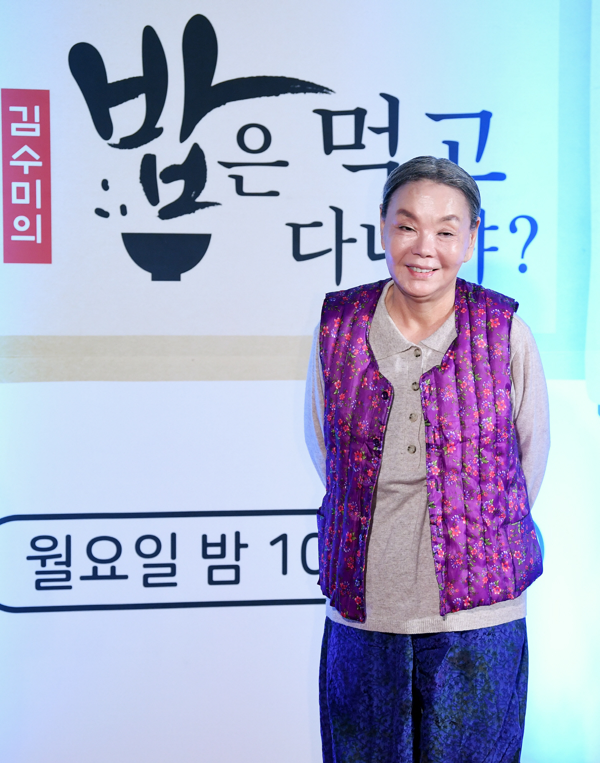 이날 김수미는 스타일링부터 믿고 보는 '욕쟁이 할머니 회장님'을 약속했다. "요즘은 다들 혼자 살고 혼자 밥먹으니 아침 밥상에서 좋은 얘기 들을 기회가 없다. 우리 국밥집에 방문하시라"며 웃었다. 김수미는 '밥은 먹고 다니냐'라는 제목에 대해 "4개월 전에 지은 제목이다. '살인의추억'과는 연관짓지 말라"며 속상한 마음도 드러냈다.