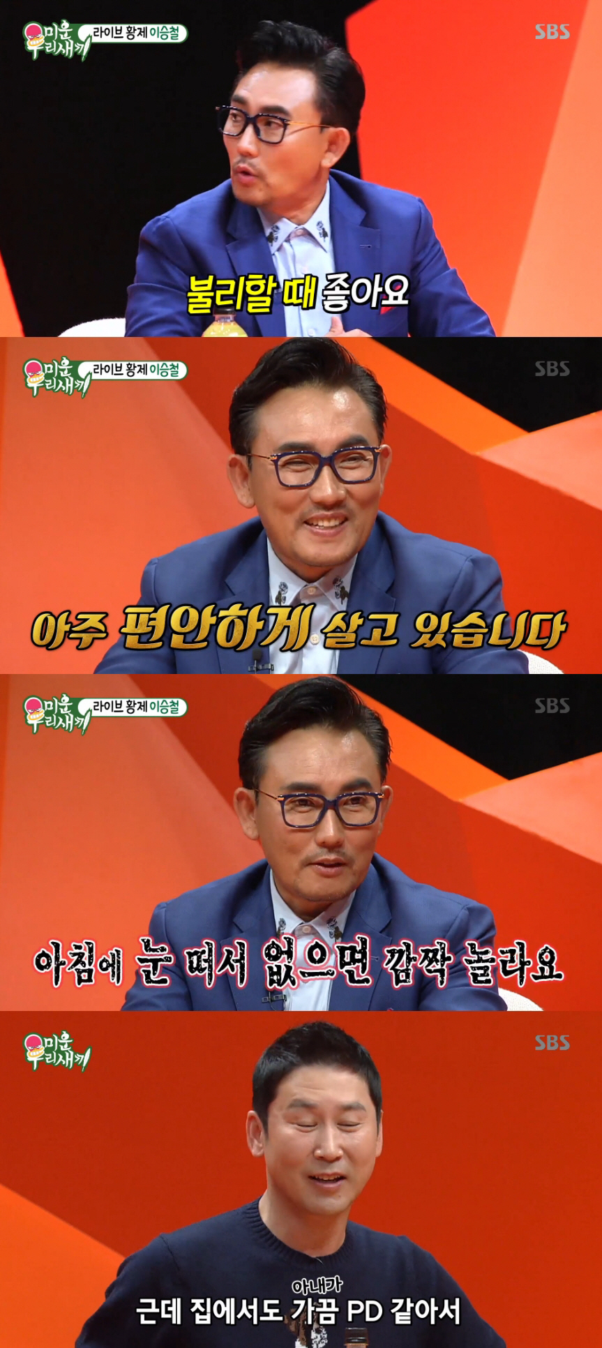'아내가 무섭다'는 이승철의 이야기에 폭풍 공감한 사람은 MC 신동엽이었다. 신동엽은 "요즘 PD 아내와 같은 프로그램을 하고 있다"며 "연예인들이 보통 PD들에게 잘한다. 힘든 걸 알기 때문이다. 그런데 아내가 집에서도 가끔 PD 같다"며 말 못 할 고충을 고백해 녹화장을 웃음바다로 만들었다.