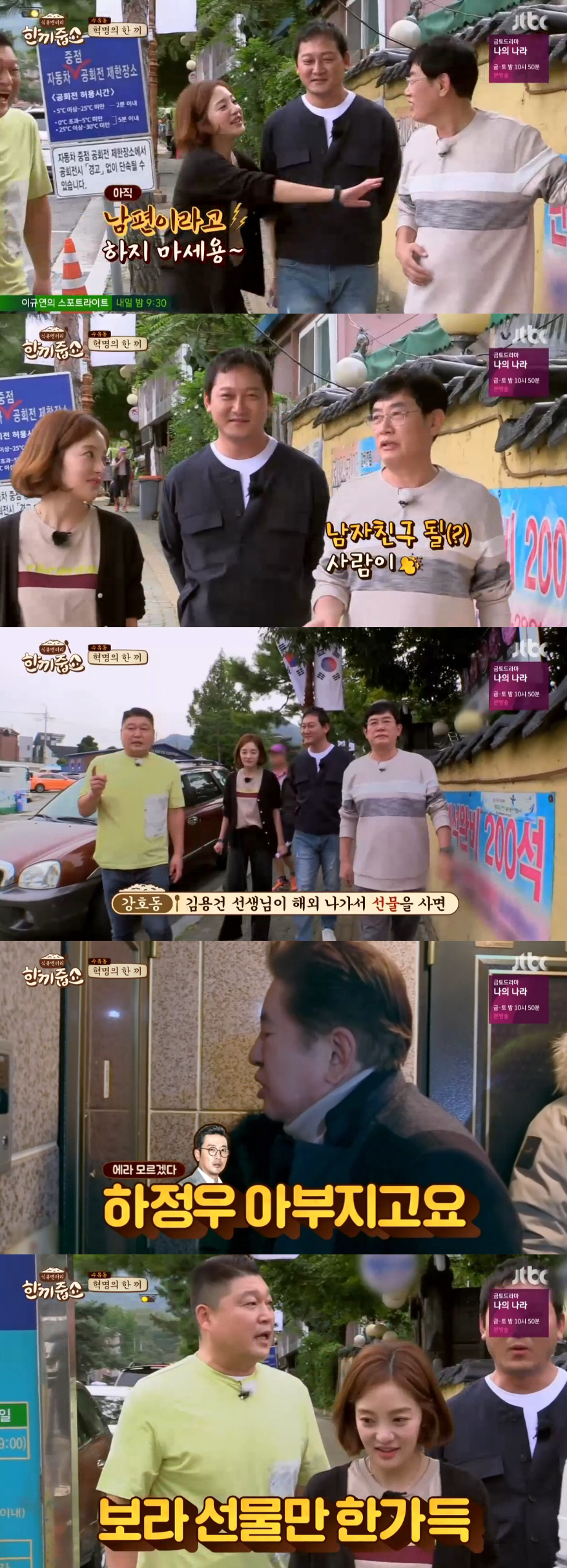 9일 방송된 종합편성채널 JTBC 예능프로그램 '한끼줍쇼'에는 배우 정만식과 황보라가 밥동무로 출연해 강북구 수유동에서 한 끼에 도전했다.