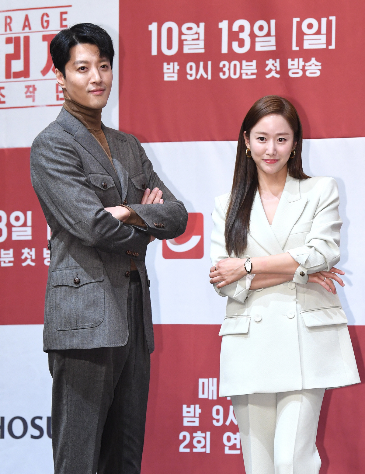 10일 오후 서울 신도림 라마다호텔에서 TV조선 드라마 '레버리지: 사기조작단' 제작발표회가 열렸다. 제작발표회에 참석해 포즈를 취하고 있는 이동건, 전혜빈. 신도림=송정헌 기자 songs@sportschosun.com/2019.10.10/