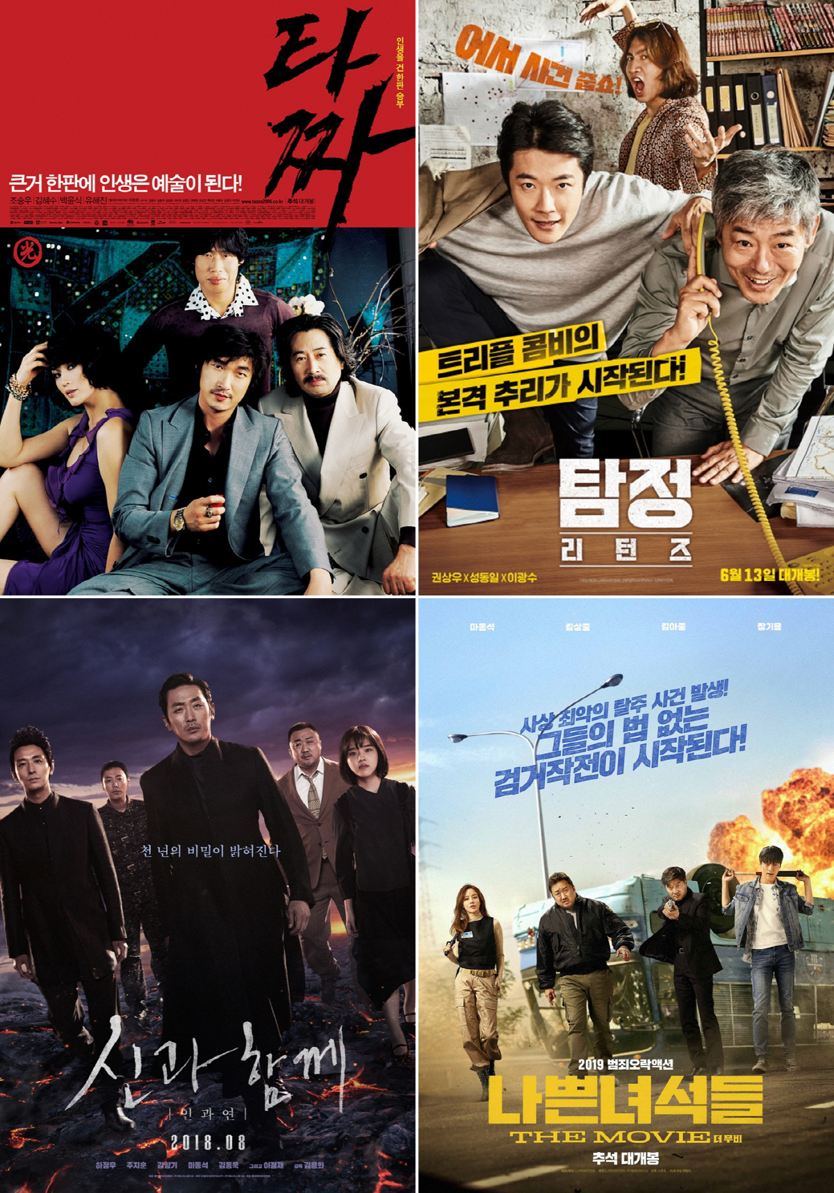 코미디와 추리를 결합해 관객들의 사랑을 받은 '조선명탐정'과 '탐정: 더 비기닝' '탐정: 리턴즈'시리즈도 관객들의 연이은 선택을 받으며 흥행에 성공한 시리즈들. 또한 웹툰을 원작으로 한 신선한 소재에 시간차를 두고 개봉하는 새로운 개봉 방식으로 각각 역대 3위와 15위에 오른 '신과함께' 시리즈도 대한민국 대표 프랜차이즈 영화로 꼽을 수 있다. 최근에는 '나쁜 녀석들: 더 무비'가 동명의 원작 드라마 속 독보적인 세계관을 바탕으로 영화화에 성공하며 드라마와 영화를 오가는 새로운 프랜차이즈 시리즈의 가능성을 열었다.