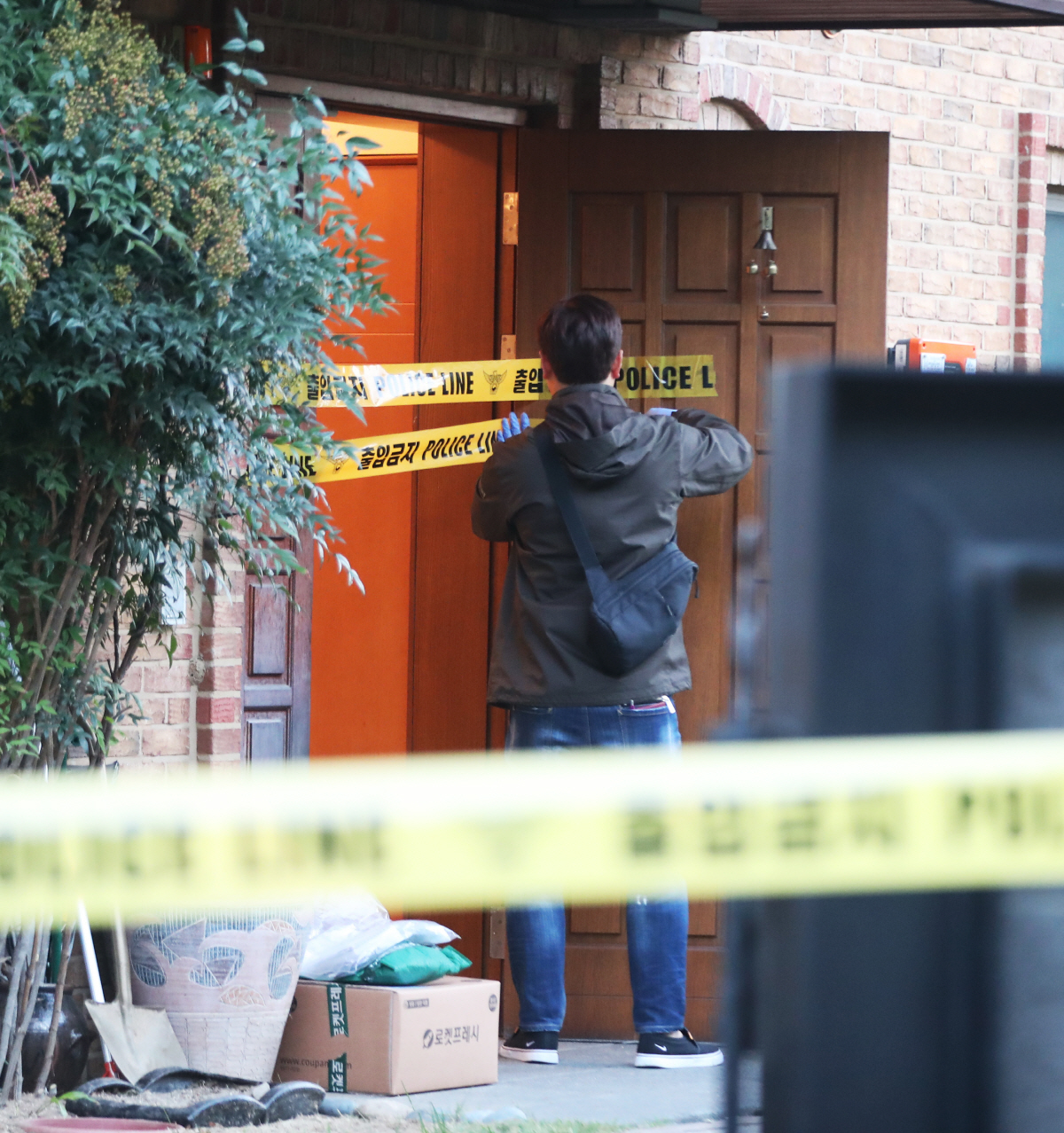 가수 겸 배우인 설리(본명 최진리·25)가 숨진 채 발견된 경기도 성남시 자택에서 14일 오후 경찰이 현장을 통제하고 있다. 사진=연합 제공 |