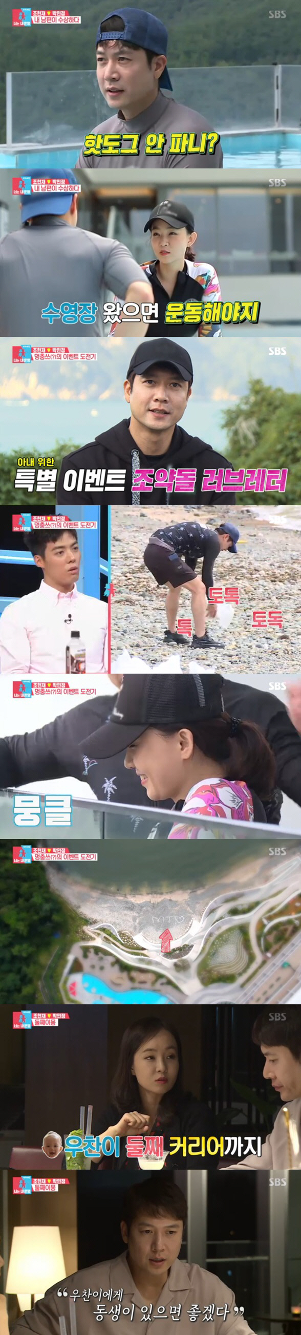 거제도는 과거 연애시절 힘든 시기를 보내고 있던 조현재를 위해 아내 박민정이 데리고 왔었던 여행지였다. 두 사람의 특별한 추억이 담긴 장소에 한껏 들뜬 것도 잠시 박민정은 화보 촬영을 앞둔 조현재를 위해 운동을 하자며 수영장으로 향했다.