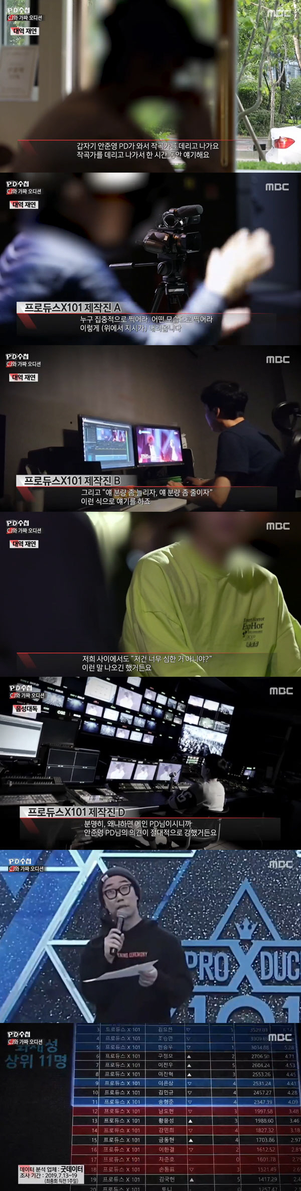 이날 방송에서는 출연자의 분량 문제, 이른바 '피디 픽' 등에 대한 증언, 마지막 생방송 당일 투표 조작으로 의심되는 정황과 과정, 그에 따라 얽힌 소속사들의 이해관계를 방송 최초로 공개했다.