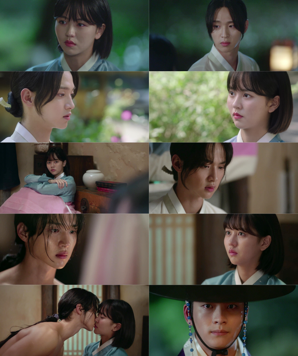 동주는 복수를 위해 누구에게도 마음을 주지 않아왔고, 녹두의 마음을 애써 외면했다. 그러나 더이상 숨길 수 없는 감정임을 깨달은 녹두는 동주에게 직진했다. 그는 "내가 너 좋아해"라고 동주에게 고백했고, 동주의 마음을 흔들었다. 옛 정인인 율무를 핑계로 자신의 마음을 거절하려는 동주에게 "그놈은 너 봐도 너는 그놈 안 본다. 네가 보는 거 나다"고 말하며 입을 맞췄다. 두 사람의 입맞춤을 목격한 율무가 녹두가 남자라는 사실을 알아버리며 충격적인 엔딩을 맞이한 '녹두전'은 앞으로 삼각 로맨스가 예고돼 긴장감이 높아졌다.