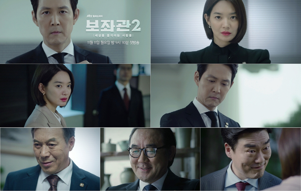 '보좌관2'는 금빛 배지를 거머쥔 국회의원 장태준의 위험한 질주, 그 치열한 여의도 생존기를 그린다. '미스함무라비', 'THE K2', '추노'를 연출한 곽정환 감독과 '라이프 온 마스', '싸우자 귀신아'를 집필한 이대일 작가, 그리고 '미스 함무라비', '뷰티 인사이드'를 통해 연타석 흥행에 성공한 제작사 스튜디오앤뉴가 시즌1에 이어 의기투합했다. '조선혼담공작소 꽃파당' 후속으로 오는 11월 11일 월요일 밤 9시 30분 JTBC에서 첫 방송된다.