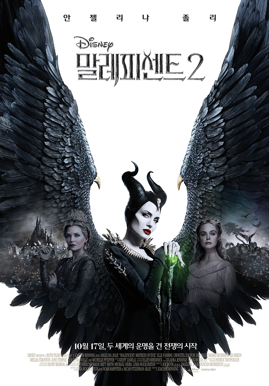 '말레피센트 2'는 안젤리나 졸리, 엘르 패닝, 미셸 파이퍼, 에드 스크레인, 주노 템플, 브렌튼 스웨이츠 등이 가세했고 '캐리비안의 해적: 죽은 자는 말이 없다'의 요아킴 뢰닝 감독이 메가폰을 잡았다. 오는 17일 개봉한다.