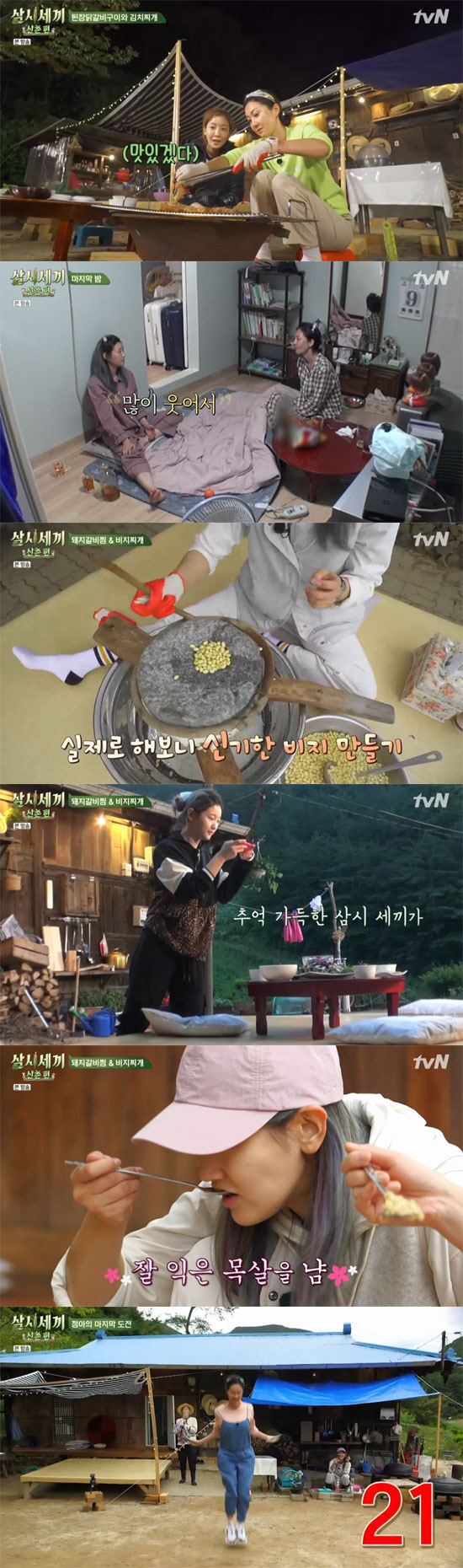 한편 세 사람은 스태프들과 서울에서 회식자리를 가졌다. 산촌 생활을 담은 앨범과 함께 산촌에서 수확한 배추를 선물받았다. 또 이날 게스트로 출연했던 오나라가 참석했다. 오나라는 "언니가 양말 잃어버렸다고 해서 사왔다"라며 센스있는 선물로 세 사람을 감동케 했다.