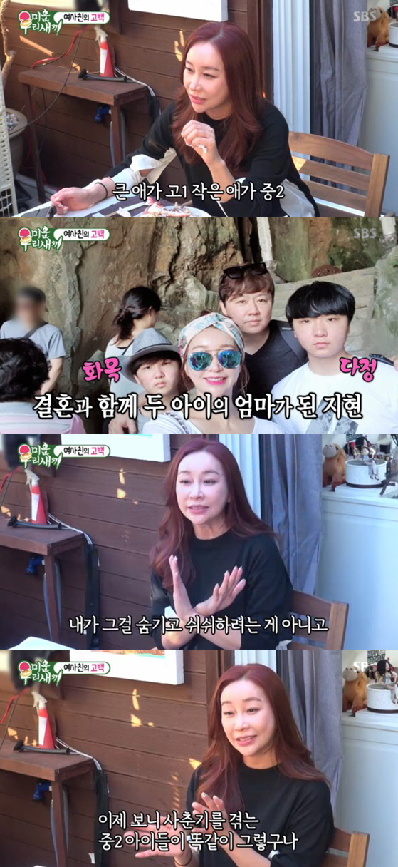 [스포츠조선닷컴 정유나 기자] '미운 우리 새끼' 김지현이 두 아이가 있다고 고백했다.