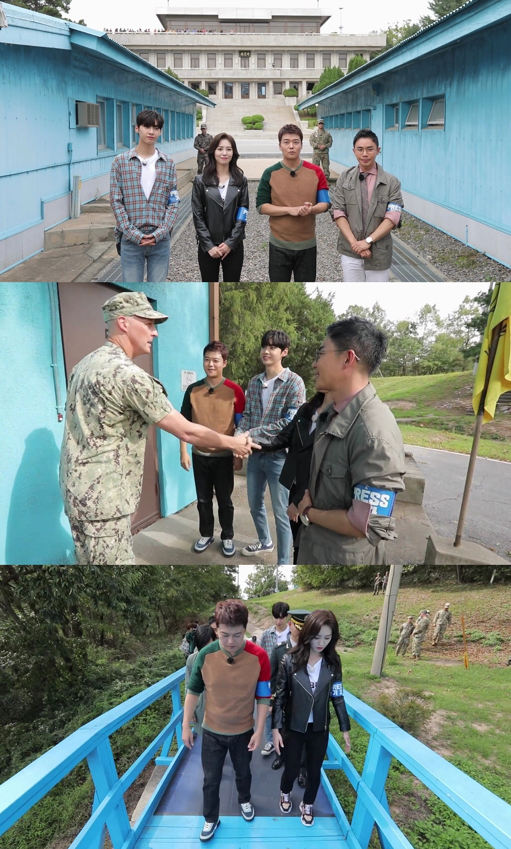 시즌2에선 100m 앞까지, 지난 방송에선 30m 앞까지. 그리고 드디어 10월 27일 방송되는 '선녀들' 11회에서는 설민석, 전현무, 이진혁, 박연경이 판문점 군사분계선 3cm 앞까지 가는 모습이 예고돼, 이목을 집중시키고 있다.
