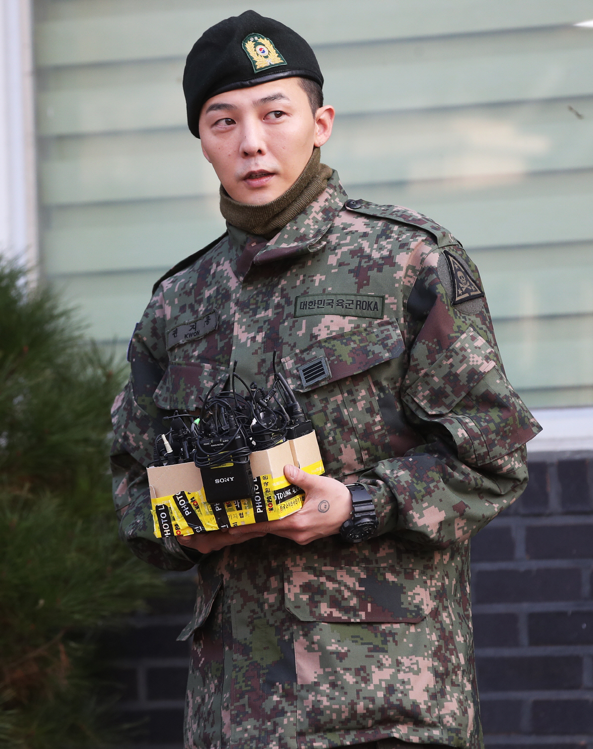 지드래곤은 지난해 2월 27일 입대, 강원도 철원 육군 3사단 백골부대 포병연대에서 군 복무를 이행하고 마쳤다. 이에 그의 전역 장소 역시 철원이 되야하지만, 아프리카돼지열병(ASF) 바이러스가 검출된 철원 지역에 팬이 몰릴 경우 방역 체계에 구멍이 뚫릴 수 있다는 우려에 전역 장소가 철원에서 용인으로 바뀌었다.