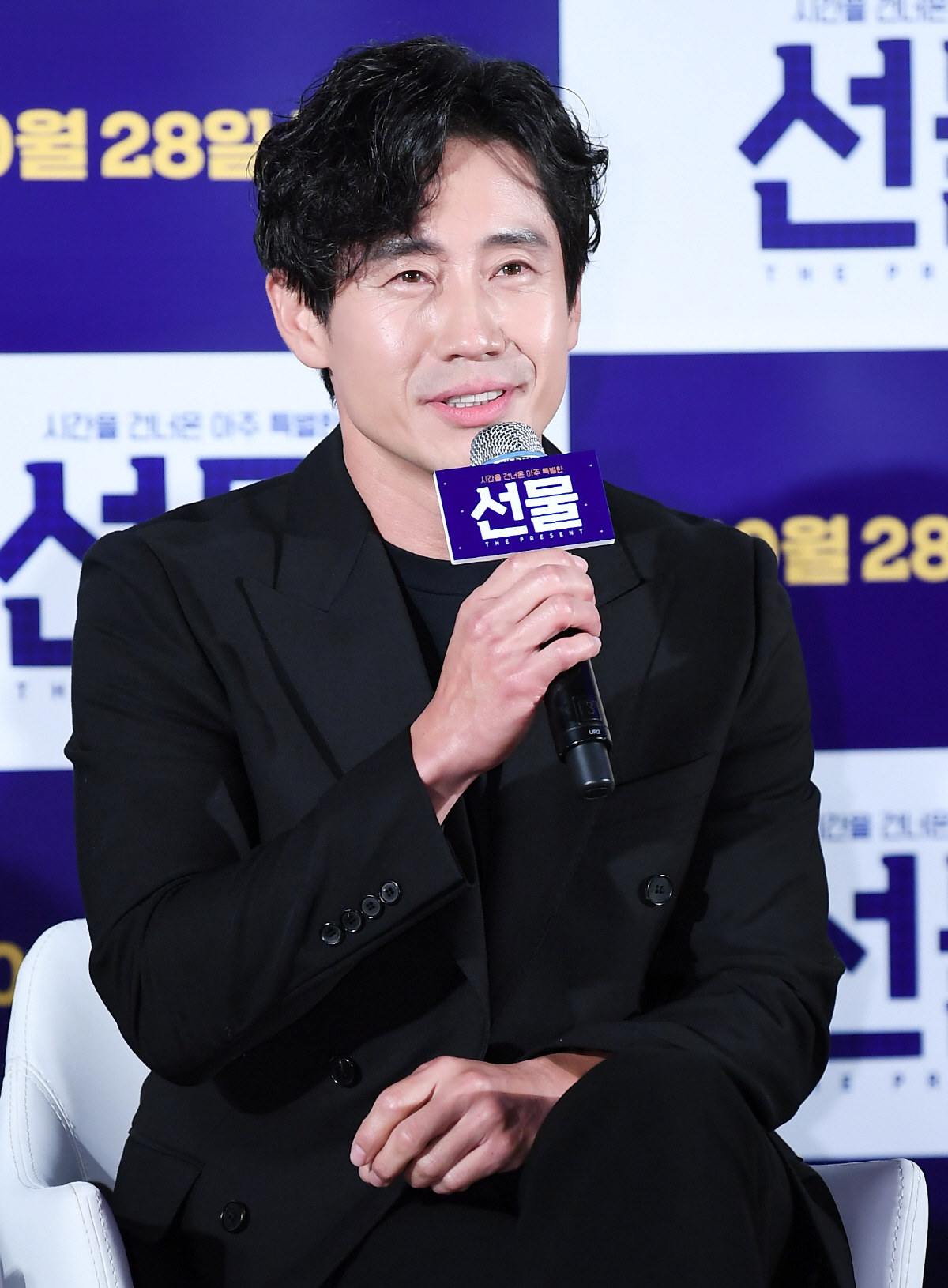 영화 '선물' 특별상영회 및 기자간담회가 28일 오전 서울 광진구 자양동 롯데시네마 건대입구에서 열렸다. 영화 '선물'은 반짝이는 아이디어를 실현하기 위해 모인 패기 만렙 청춘들 앞에 과거에서 온 수상한 남자가 나타나면서 벌어지는 이야기를 그린 유쾌 발랄 코미디이다. 배우 신하균이 인터뷰를 하고 있다. 자양동=박재만 기자 pjm@sportschosun.com/2019.10.28/