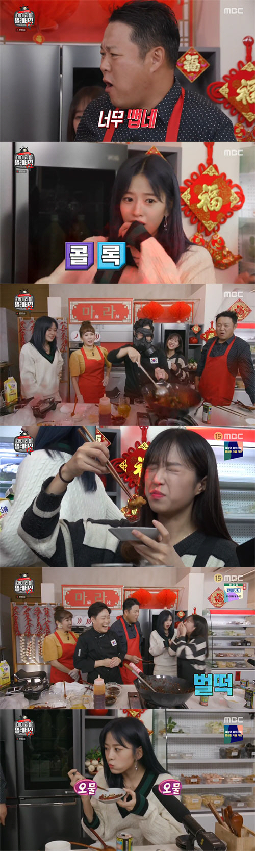 우선 장영란과 쯔양 김구라는 마라를 그냥 먹어봤고, 처음에는 "아무렇지도 않다"라고 자신만만했지만 이내 김구라는 "온다. 오네"라며 중국 코코넛음료를 마셨다.