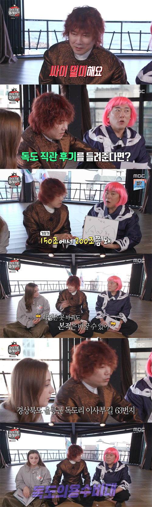 또 김장훈은 "원래 보물 찾기를 하려고 했었다"라며 "독도 아래에는 메탄 하이드레이트가 있고, 그게 시가 150조에서 200조 쯤 된다"라고 밝혀 모두를 놀라게 했다.