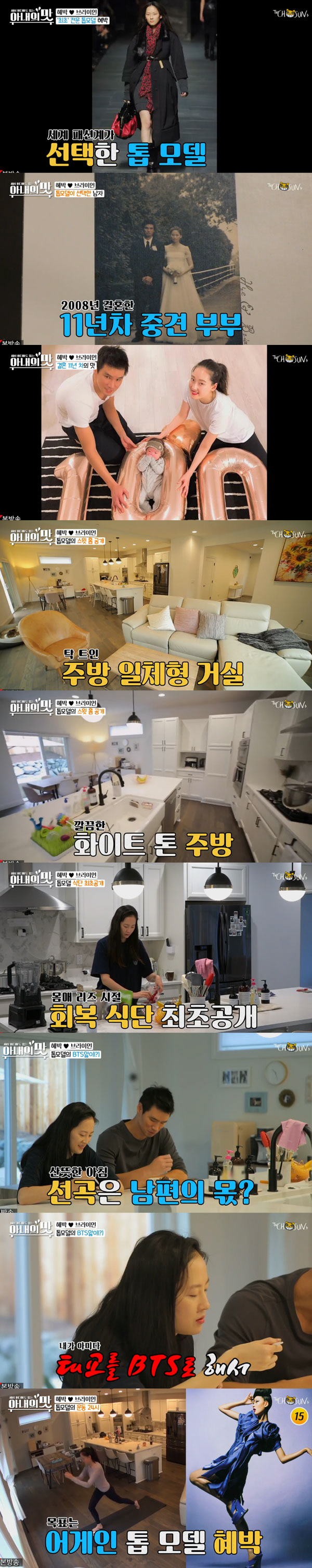 혜박은 테니스코치 브라이언박과 2008년 결혼해 10년 만인 2018년 딸을 출산했다. 행복한 육아 덕에 2년 째 톱 모델은 휴업 중인 혜박. 이후 주방 일체형 거실, 화이트 톤 주방, 리아의 침실, 절제미가 돋보이는 안방, 계절 별로 분류한 셀 수 없는 옷들까지 혜박의 시애틀 집이 공개됐다.