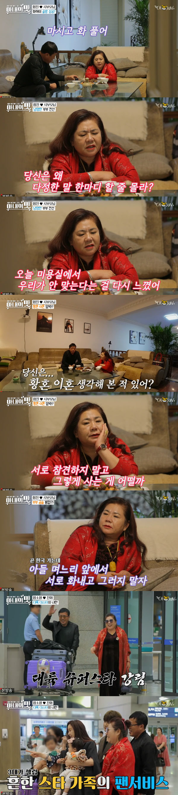 다음날, 시아버지는 시어머니에게 "진짜 여기 살거야? 나 혼자 중국에 있는거 싫다. 못 산다"고 했지만, 시어머니는 "당신이 불편한 게 아니고?"라며 정곡을 찔렀다.