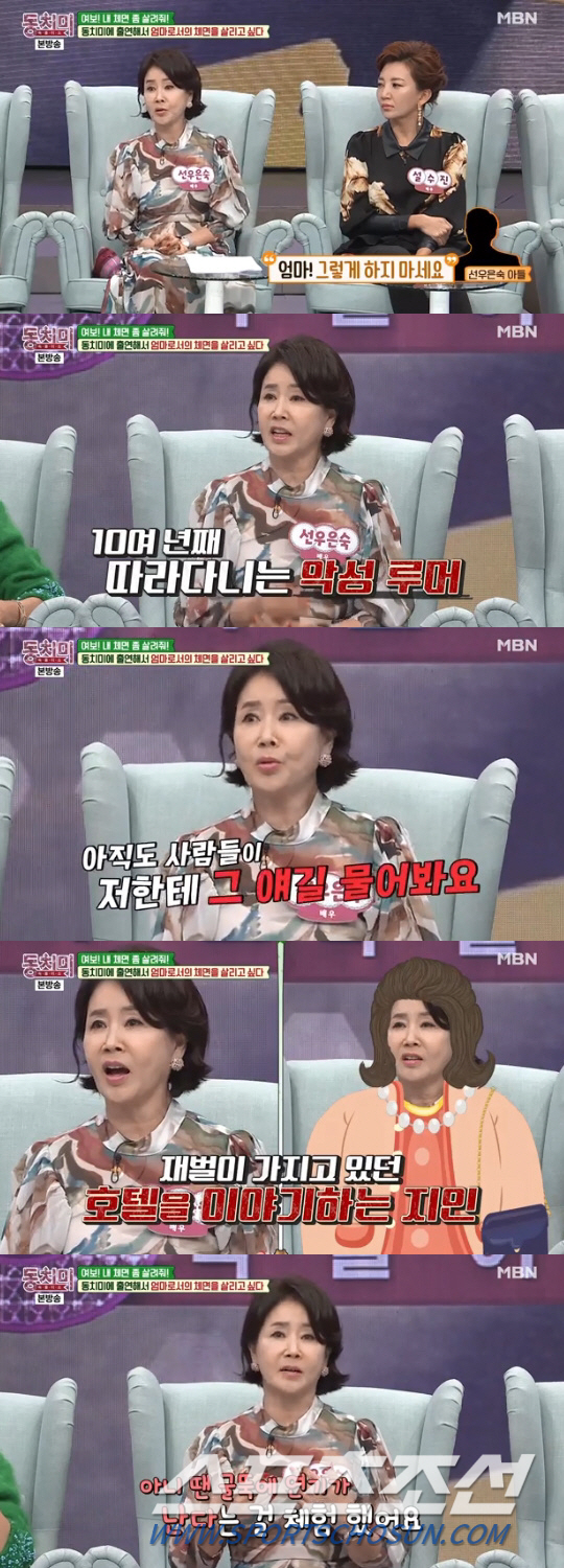이날 선우은숙은 "엄마로서의 체면을 살리고 싶다"고 운을 뗐다. 그는 "지금은 편안하고 아무렇지 않다. 상처도 안 받는다. 웃으면서 이야기할 수 있는데 과거 나의 의사와는 전혀 상관없는 루머가 날 너무 힘들게 했다"고 털어놨다.