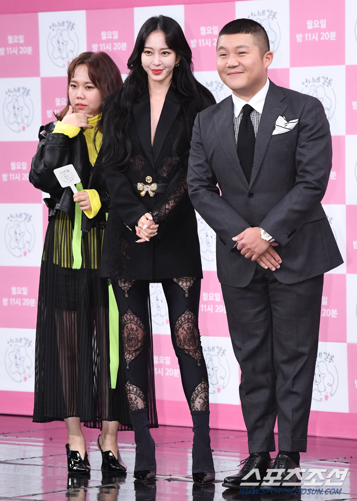 MBC 새 예능 '언니네 쌀롱' 제작발표회가 4일 오전 서울 마포구 상암동 MBC 사옥에서 열렸다. 제작발표회에 참석해 포즈를 취하고 있는 홍현희, 한예슬. 조세호. 상암=송정헌 기자 songs@sportschosun.com/2019.11.04/