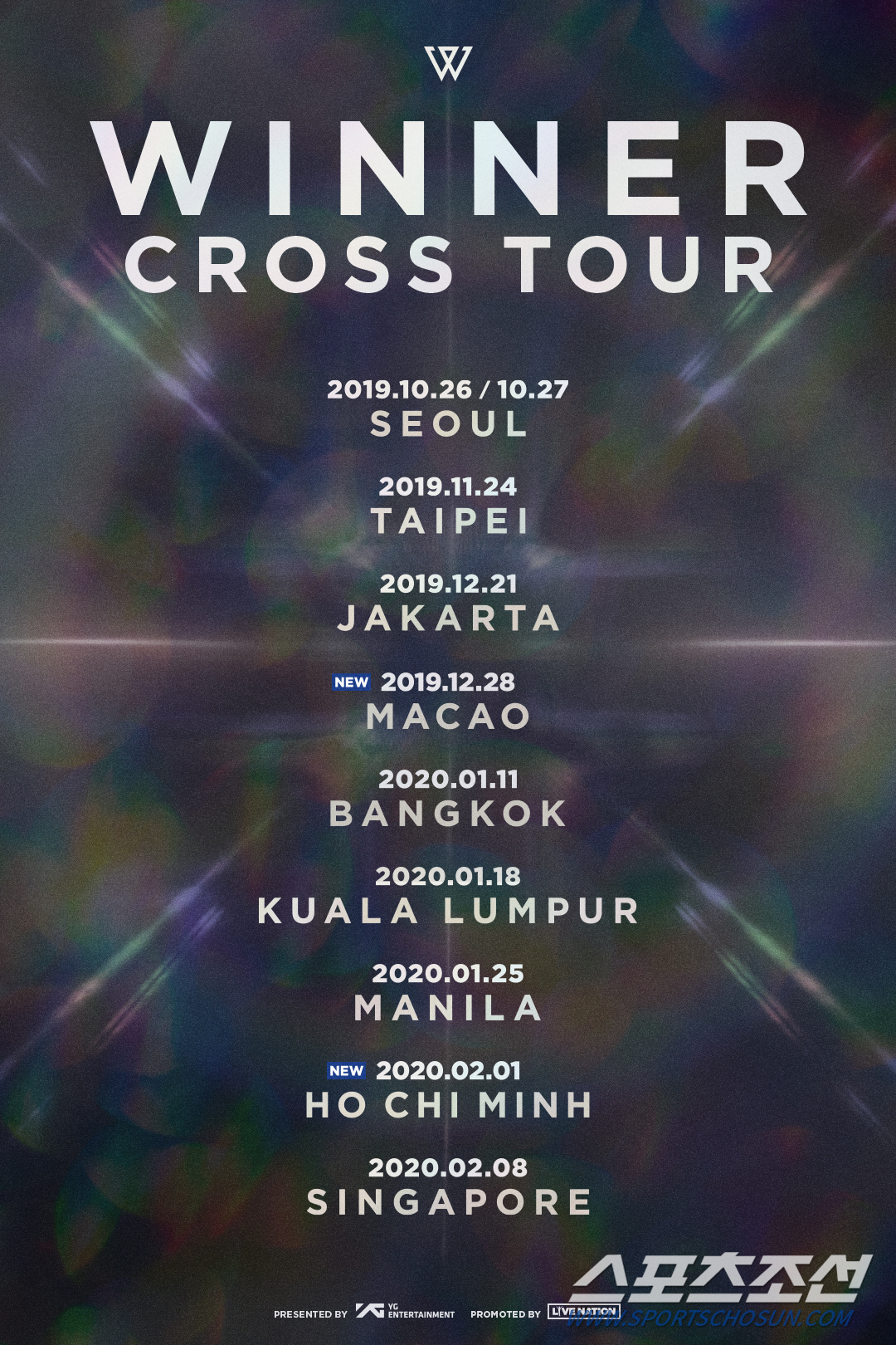 새롭게 업데이트된 'WINNER CROSS TOUR' 투어 스케줄에 따르면 위너는 12월 28일 마카오, 내년 2월 1일 베트남 호치민에서 콘서트 추가 개최를 확정했다. 위너는 마카오와 베트남에서 처음으로 단독 공연을 열 예정이라 현지 팬들의 뜨거운 반응이 예상된다.
