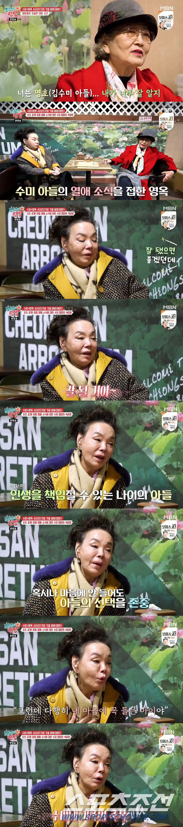 이날 김영옥은 "아들 명호, 잘 됐으면 좋겠던데"라며 김수미 아들의 교제를 언급했다.