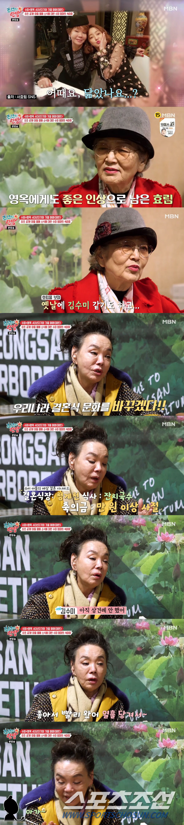 김수미는 지난 5일 방송된 MBN '최고의 한방'에서 선배 배우 김영옥과 이야기를 나눴다.