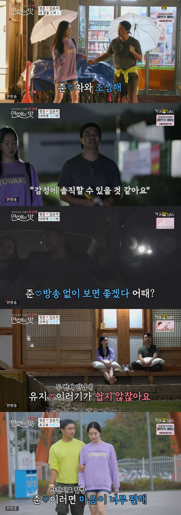 [스포츠조선닷컴 이우주 기자] '연애의 맛3' 정준·김유지 커플과 이재황·유다솜 커플에 브레이크가 걸렸다. 윤정수는 두 번째 소개팅에 도전했다.