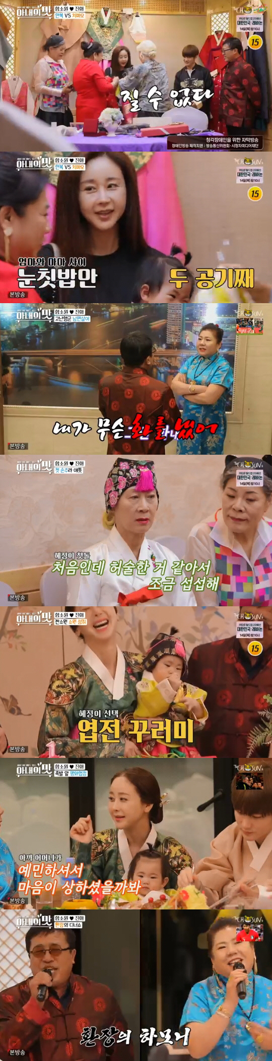 그 사이 함소원 어머니는 "혜정이가 처음인데 (돌잔치가) 허술한 거 같아서 조금 섭섭하다. 내가 또 이런 일을 볼 수 있겠냐. 혜정이가 마지막일 수도 있다"며 평소보다 예민하게 굴었던 이유에 대해 설명했다. 이를 들은 함소원은 "매년 돌잔치 한다고 귀찮아하지나 마라"라며 어머니의 기분을 풀어주려고 노력했다. 이에 함소원 어머니도 손녀를 위해 기꺼이 마음을 풀고 양보하기로 했다.