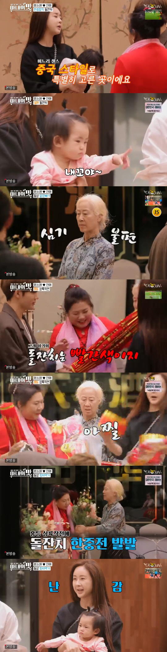 12일 방송된 TV조선 '세상 어디에도 없는, 아내의 맛'(이하 '아내의 맛')에서는 새롭게 합류한 김빈우의 리얼 육아 라이프, 함소원-진화 딸 혜정이의 '한중 합작 돌잔치' 현장이 공개됐다.