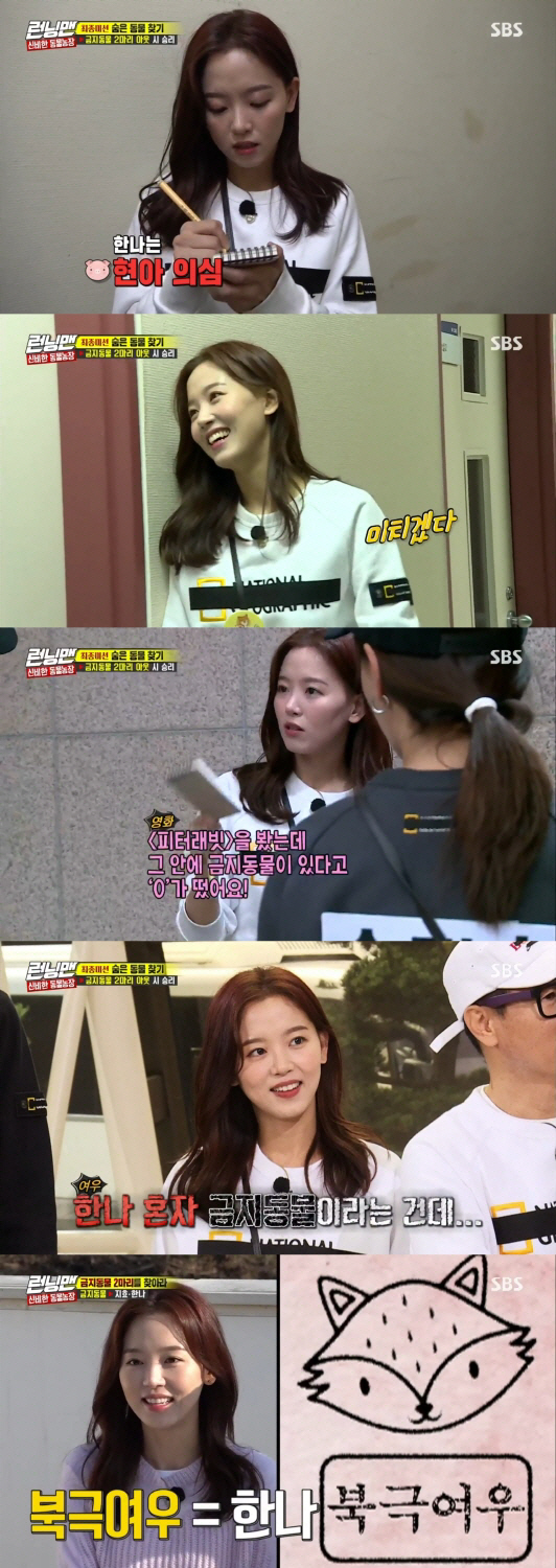 [스포츠조선 조윤선 기자] 배우 강한나가 '런닝맨'에서 '금지 동물'인 '사람'이 되어 멤버들을 혼란에 빠뜨렸다.