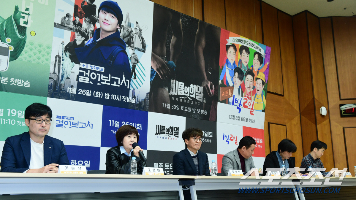 18일 여의도 KBS 신관 국제회의실에서 열린 KBS 2TV 신규프로그램 설명회에서 '정해인의 걸어보고서' 조현아 CP가 인사말을 하고있다. '걸어보고서'는 단순한 여행리얼리티가 아닌 '걸어서 여행하고 기록하는 다큐멘터리'프로그램이다. 여의도=최문영 기자 deer@sportschosun.com /2019.11.18/